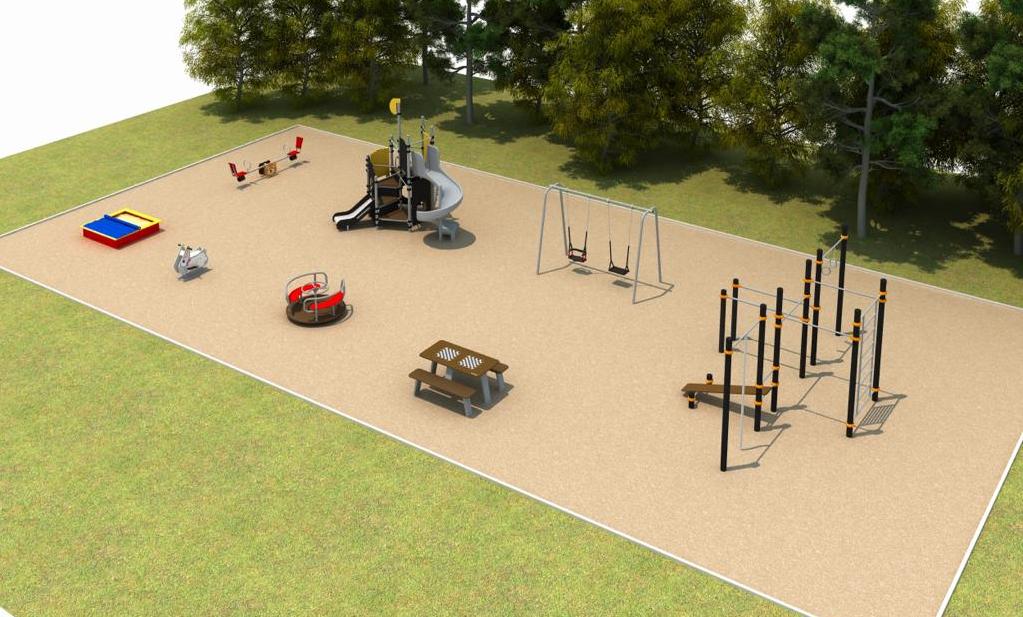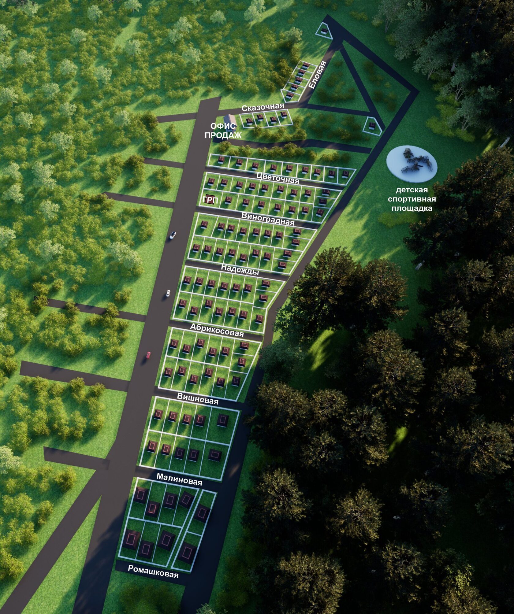 Дороги, парк, детская игровая площадка, в будущем — сад и школа